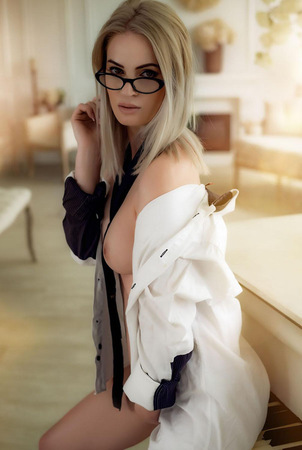 Ich bin 27 Jahre junges Model mit blonde Haar.