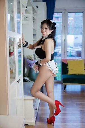 schlanken Figur und den prallen Brüsten.
