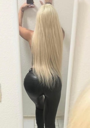 Haare:blond, rückenlang, glatt