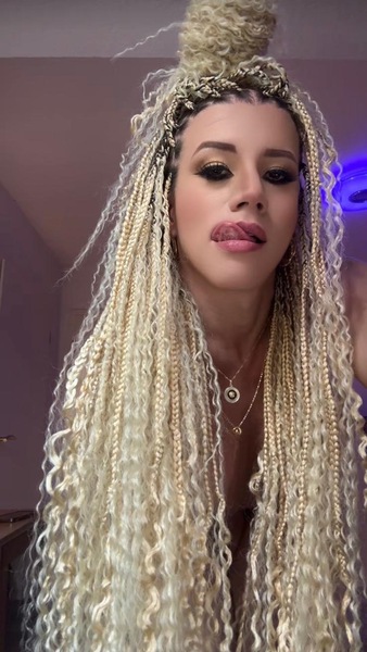 Haare:blond, rückenlang, glatt